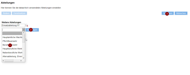Wenn du der Nutzer mit der Rolle Gemeinde-/Stadtbrandmeister bist, stelle bitte die Abteilungen für deine Gemeinde-/Stadtfeuerwehr ein: