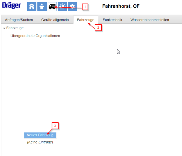 Zum Anlegen der Fahrzeuge der Ortsfeuerwehr klickst du auf: